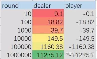 结果是50150个庄家破产,49850个玩家破产,符合预期。